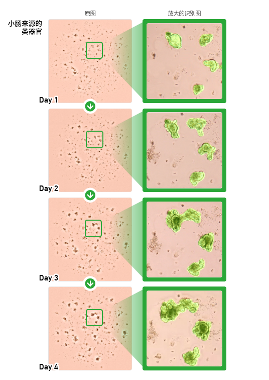 與傳統(tǒng) 2D 細(xì)胞培養(yǎng)模式相比,3D 培養(yǎng)的類器官包含多種細(xì)胞類型,能夠形成具有功能的“微器官”, 能更好地用于模擬器官組織的發(fā)生過(guò)程及生理病理狀態(tài),因此類器官在藥物研發(fā)和基礎(chǔ)研究中發(fā)揮 著越來(lái)越重要的作用,對(duì)類器官的生長(zhǎng)狀態(tài)的觀察并進(jìn)行分析也越來(lái)越重要。