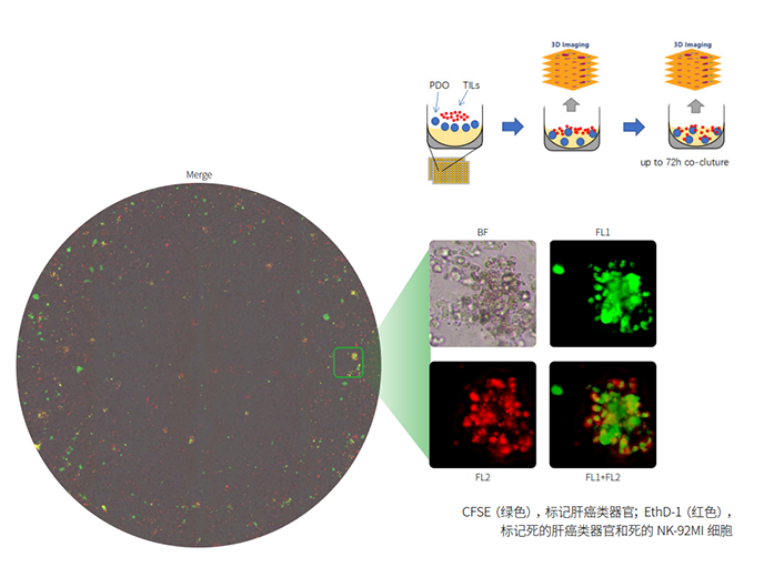 利用死活染色試劑(如 AOPI)對(duì)培養(yǎng)的類器官或腫瘤球進(jìn)行死活染色,并進(jìn)行 Z 軸層掃的熒光成像,得到培養(yǎng)類器官或加藥處 理后的死活細(xì)胞分布與空間定位,更加精確高效的進(jìn)行藥物篩選和分析。